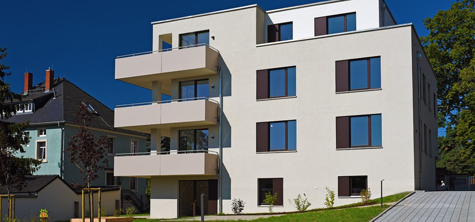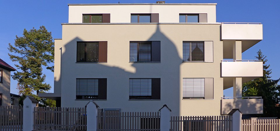 In der Villen- und Gartenstadt Radebeul wurde 2016 der Neubau eines Mehrfamilienhauses mit sechs Wohneinheiten und sechs Garagen realisiert. Das 4-geschossige Gebäude mit Gartengeschoss und Keller wurde in Massivbauweise errichtet und besitzt eine Gesamtwohnfläche von ca. 633 qm.